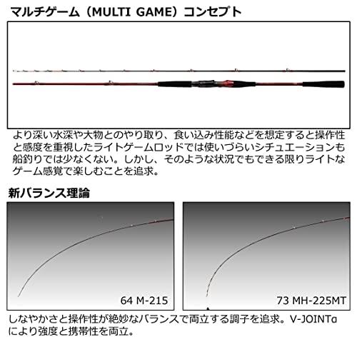 ゲームロッドの領域を広げるマルチゲーム MULTI GAME コンセプト。ヘビーな船釣りをゲーム感覚で楽しむロッドの提案。より深い水深や大物とのやり取り、食い込み性能などを想定すると操作性と感度を重視したライトゲームロッドでは使いづらいシチュエーションも船釣りでは少なくない。しかし、そのような状況でもできる限りライトなゲーム感覚で楽しむことを追求するのがマルチゲームコンセプト。ホールド性と軽さのバランスを実釣で追求したZERO-SEATの2タイプを適材適所で装備し、ESS、新バランス理論を駆使してしなやかさと操作性が絶妙なバランスで両立する調子を追求。V-JOINTαにより強度と携帯性を両立。