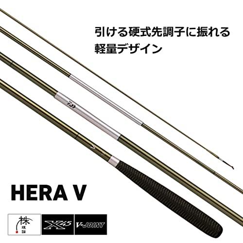 確かな性能と釣り味の良さを兼ね備える、並継へら竿。 具体的にその良さとは、エサを振り込みやすく、アワせやすく、そして掛けたへらぶなを寄せやすい、 基本性能の高さ だ。 さらに踏み込めば、これら性能の根源には、ダイワの並継へら竿が描く 美しい弧 がある。 HERA Vは硬式先調子だが、竿先の曲がりに淀みもツッパリもなく、振り込みやアワセでは胴がブレずにきちんと竿全体が仕事をする。しなやかで、マイルドな使用感だが、鈍重ではない。軽量設計の硬式先調子らしく、へら師の操作に対してハイレスポンスで、キレがある使用感になっている。