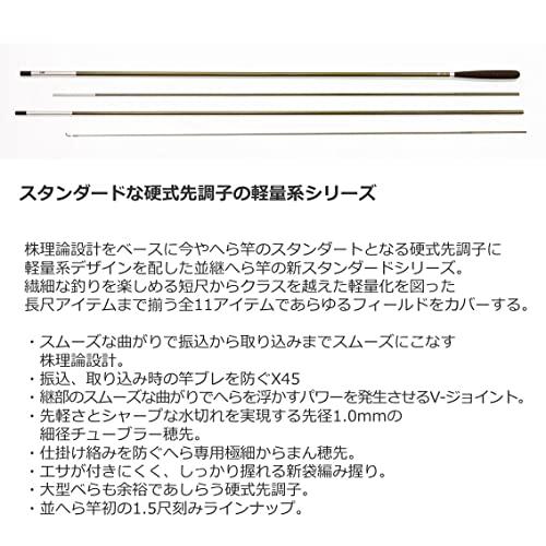 軽量系デザインを配した並継へら竿の新スタンダードシリーズ。 繊細な釣りを楽しめる短尺からクラスを越えた軽量化を図った