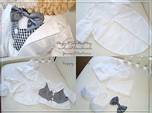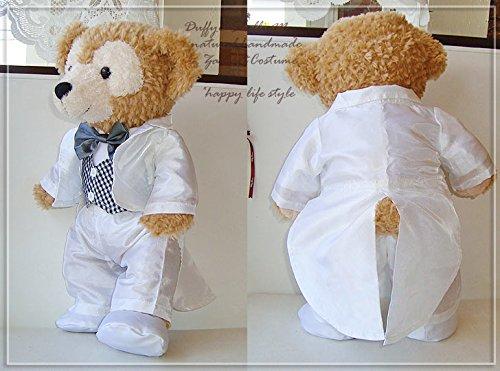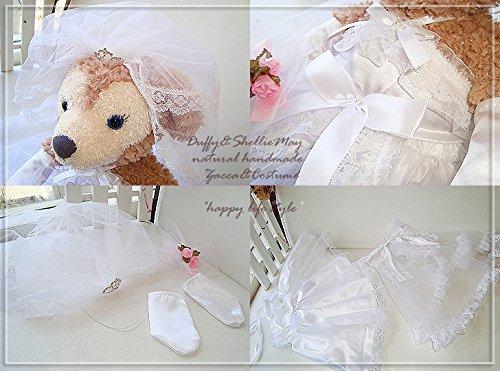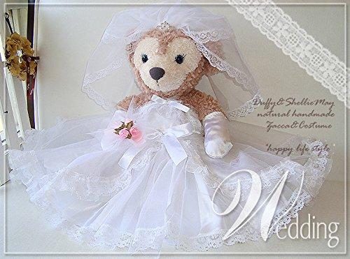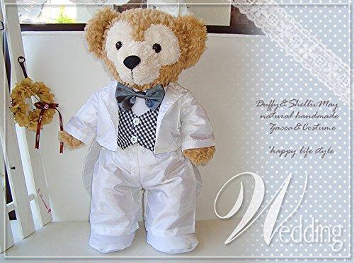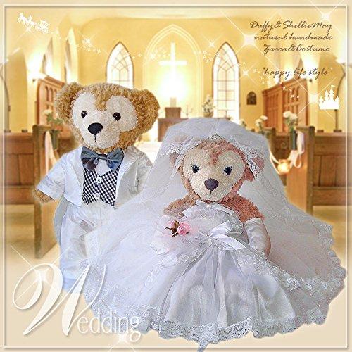 とってもかわいいダッフィー*シェリーメイSサイズにちょうどいい♪ ハンドメイドのウエディングドレスとタキシードのコスチュームペアセットです♪ ウエルカムベアにいかがでしょうか。シェリーメイ用 ○ふわふわの豪華なドレス ○バックリボン付き腰巻チュール ○パニエ ○ヴェール ○ブーケ ○グローブ ○靴 ダッフィー用 ○タキシード ○パンツ ○ベスト付きシャツ ○ネクタイ ○靴 ※ぬいぐるみはついておりません。