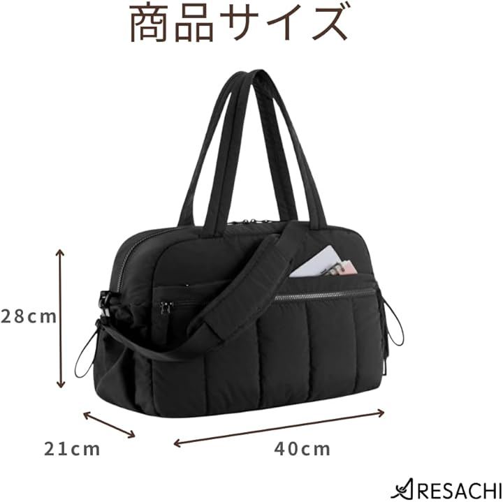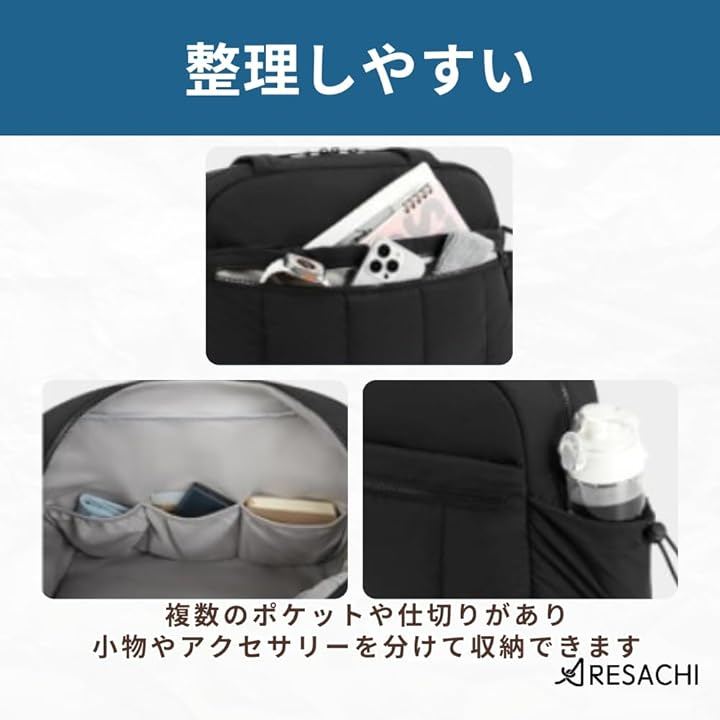 「大容量で荷物がたっぷり入る」旅行やジム、週末のお出かけなど、荷物が多いシーンでも使いやすいデザインです。