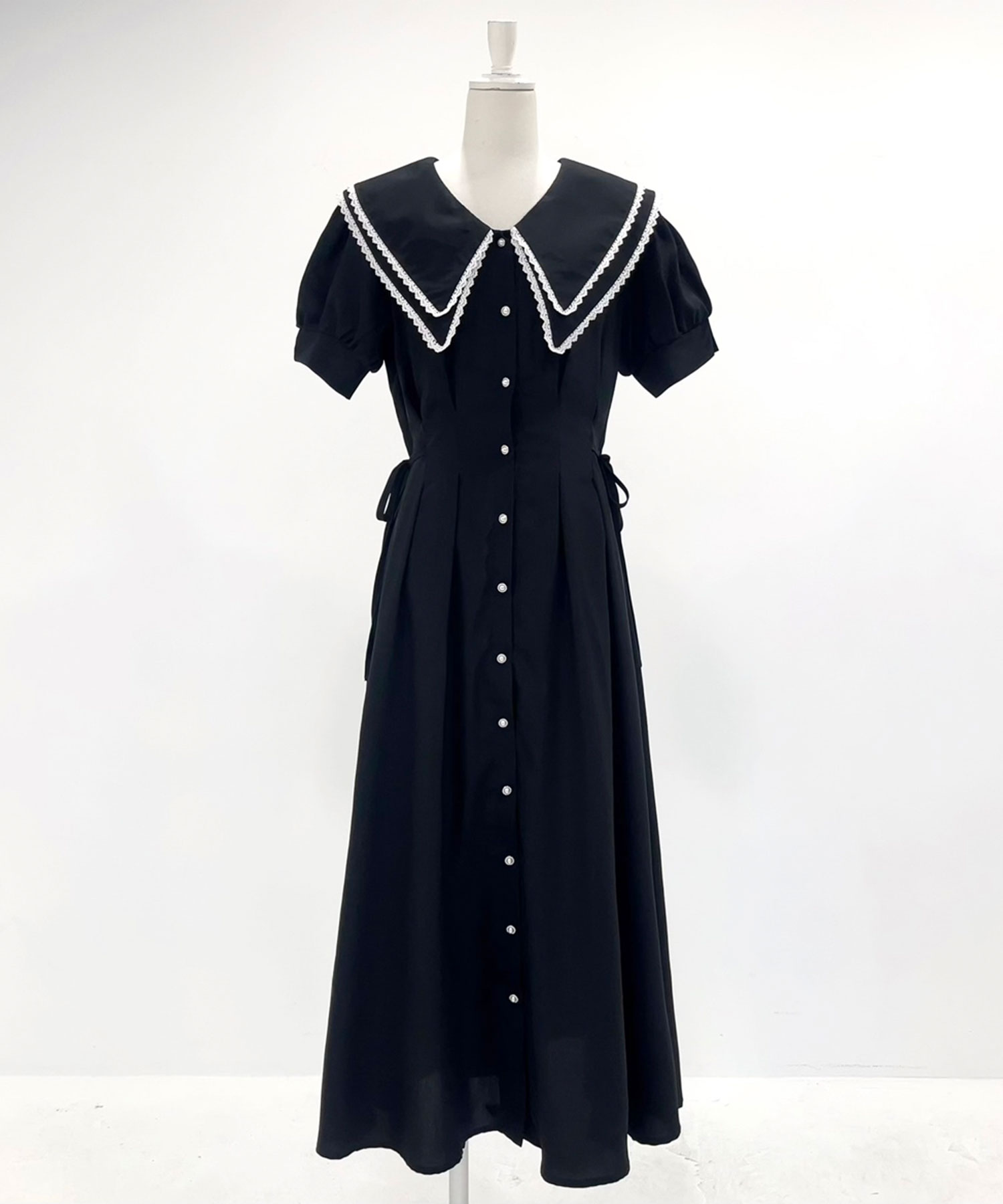 襟の縁にあしらったスカラップレースは、クラシカルなムードを演出します。
