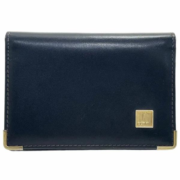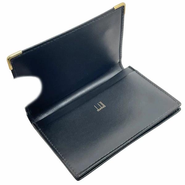 Dunhill logo card case, black leather, business card holder, card slots, IC/ID card holder, pass case, commuter pass holder, men's brand accessory [pre-owned]