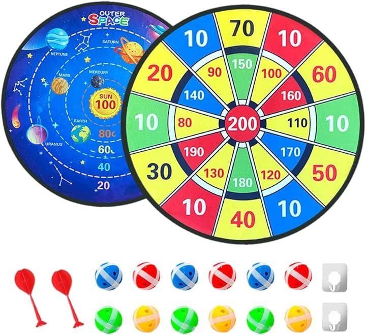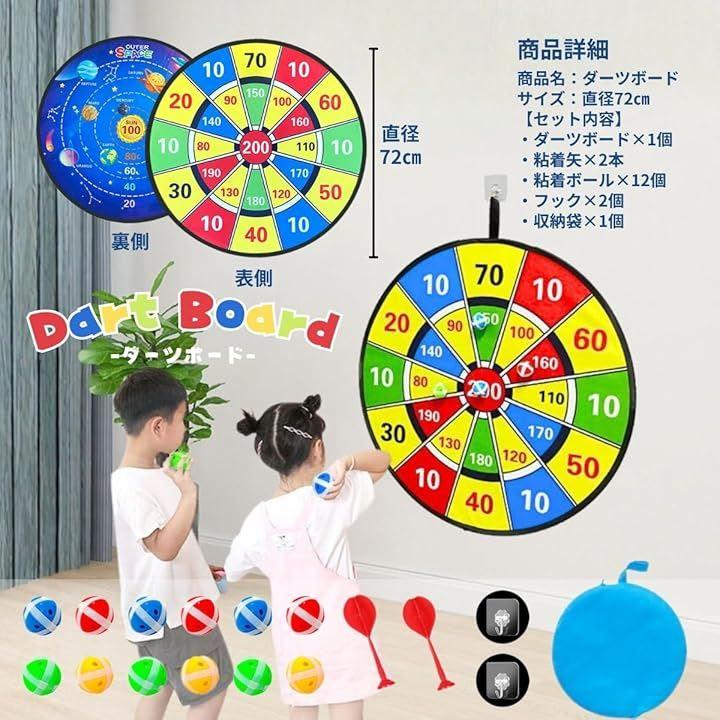「商品内容」ダーツボードx1、粘着矢x2、粘着ボールx12、フックx2、収納袋x1「サイズ」ダーツボード:直径約72cm*対象年齢6歳以上