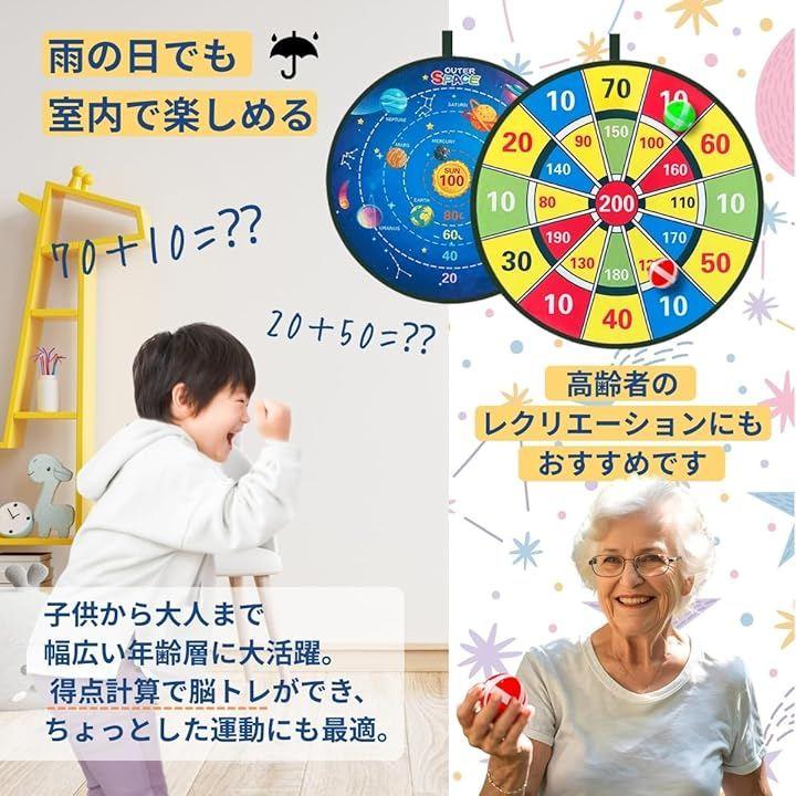 「脳トレx運動を同時に叶える知育ダーツ」 得点を競うことで「計算力」「集中力」「判断力」を楽しく鍛えられるほか、ボールを投げる動作により肩・腕・体幹の運動にも繋がるアイテムです。