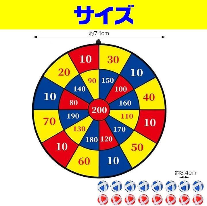 「ダーツ ボール おもちゃ セット内容 」 (1)ダーツ的1枚(直径74cm 折りたたみ式)、(2)マジックボール16個(赤球x8個、青球x8個、直径3.4cm)