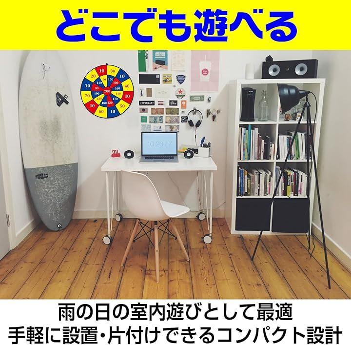 手軽に設置・片付けできるコンパクト設計で、スペースを気にせずどこでも遊べる理想的なダーツボードセットです。