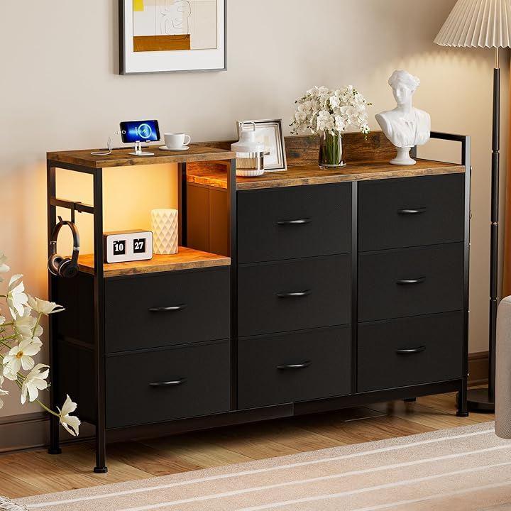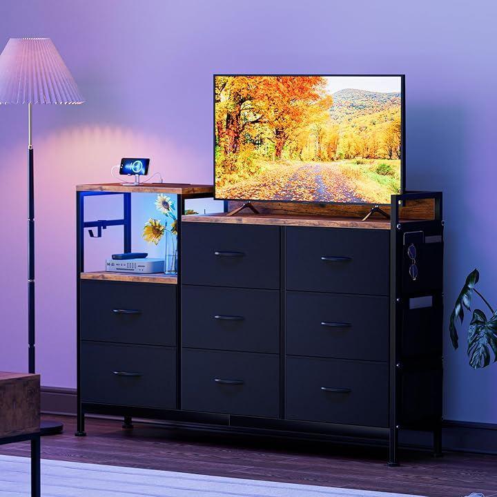 This stylish, wide chest of drawers with LED lights and drawers offers ample storage and storage. It's a simple, Nordic-style storage box with 3 drawers and 8 drawers, perfect for organizing your living room, bedroom, or even a single living space.