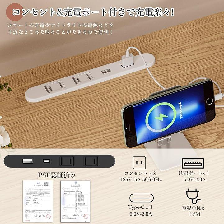 デスクライトの接続やスマートフォンの充電がすぐ手元ででき、毎日の生活がより快適に。