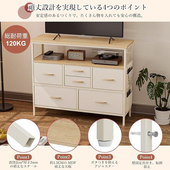 「強度抜群の構造で安定&安全のチェスト」耐久性に優れた中空スチールフレーム(幅約1.5cm)を採用し、引き出しにたっぷり収納しても安定した強度を維持。