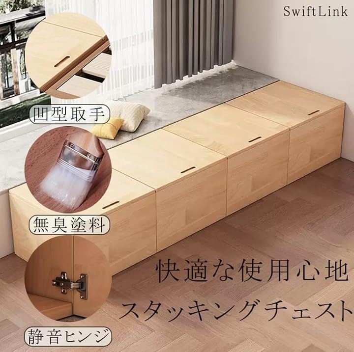 ベッドサイド、リビング収納、玄関収納、室内バルコニー、和室の小物入れなど、様々なシーンで活躍する多機能スタッキングチェストです。