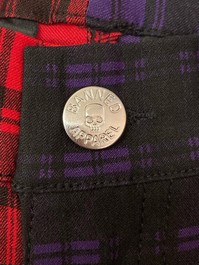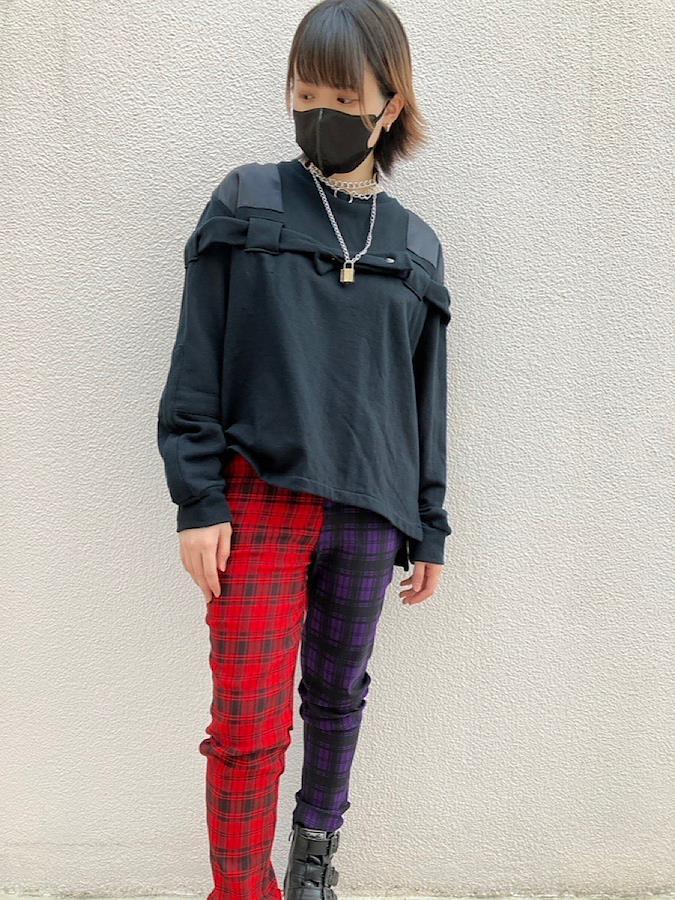 インポートブランド「BANNED APPAREL」のチェックスキニー。左右で色が違う個性的なデザイン☆動きやすいストレッチ素材で穿き心地も◎