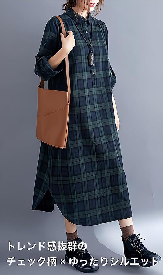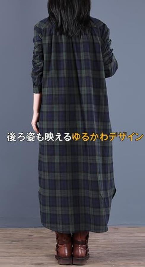 「チェック柄とロング丈で大人可愛い印象に」トレンド感あふれるチェック柄とロング丈が特徴的で、大人っぽさと可愛らしさを兼ね備えた一枚です。