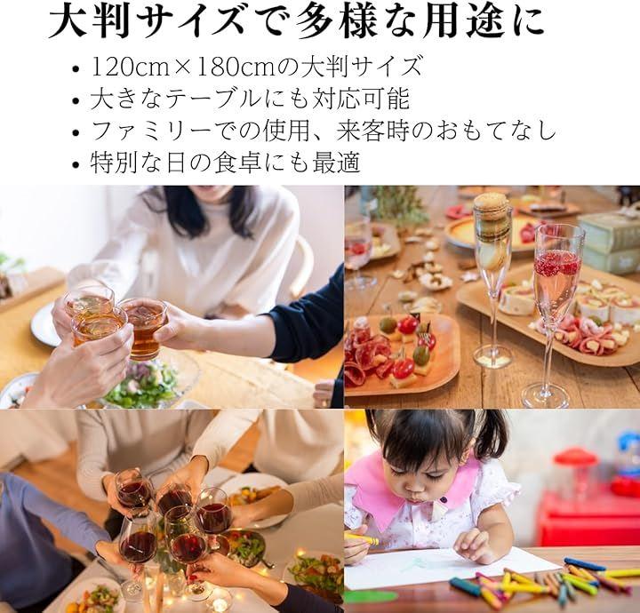120x180cmの大判サイズで6人用テーブルにフィットし、汚れ防止と滑り止め機能も備わったチェックテーブルクロス