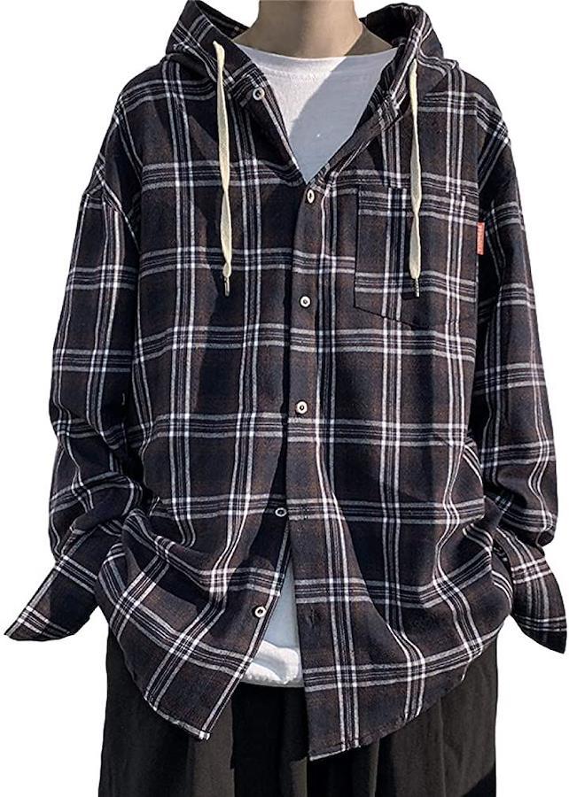 ・トレンドのゆったりシルエットのチェックシャツパーカー。