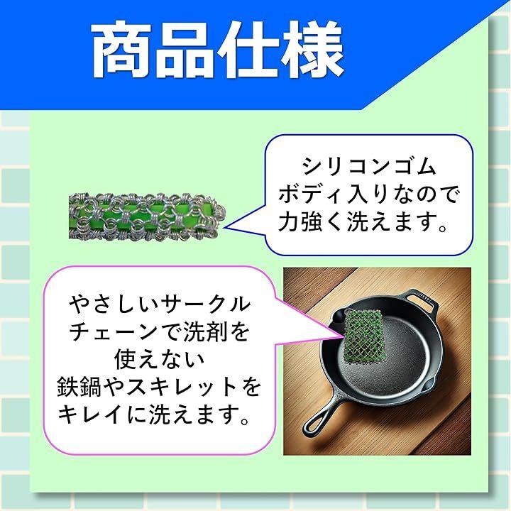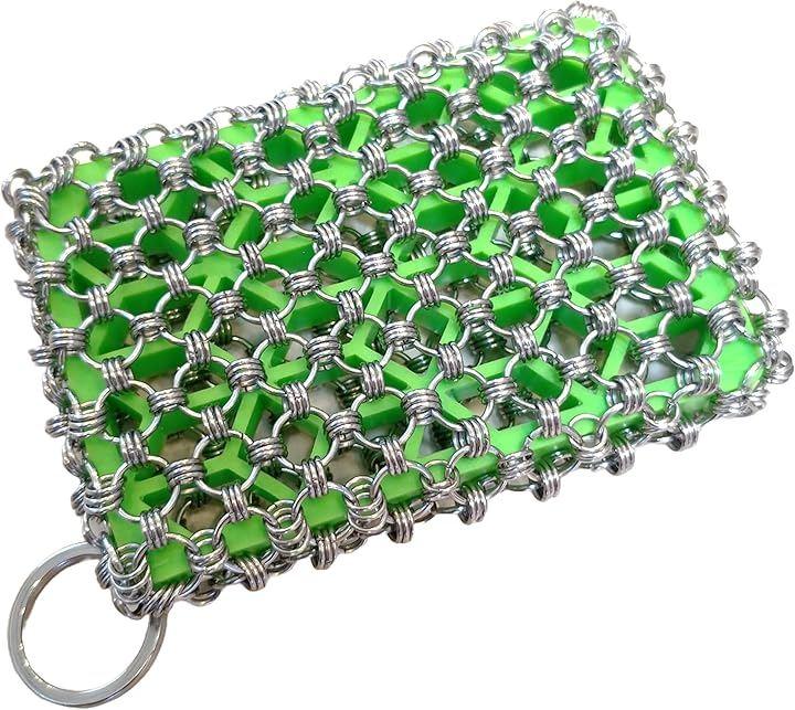 チェーンメイル状のメッシュが、焦げ付きや頑固な汚れをスムーズに除去し、シーズニングを傷つけずに調理器具を清潔に保ちます。
