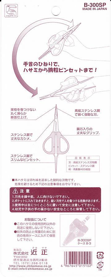 3営業日以内に発送≪新品未開封品≫:チカマサ ステンレス ぶどう鋏 ピンセット付 B-300SPパターン(種類): 単品