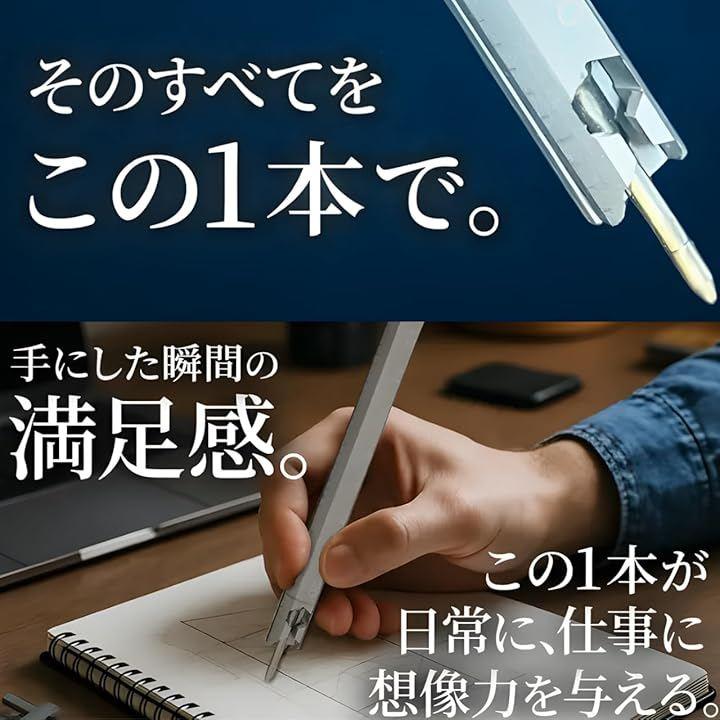 ペンとしての書き心地はもちろん、定規(スケール)機能やプラスドライバーを搭載し、図面作成、DIY作業、現場での簡易測定まで幅広いシーンで活躍します。