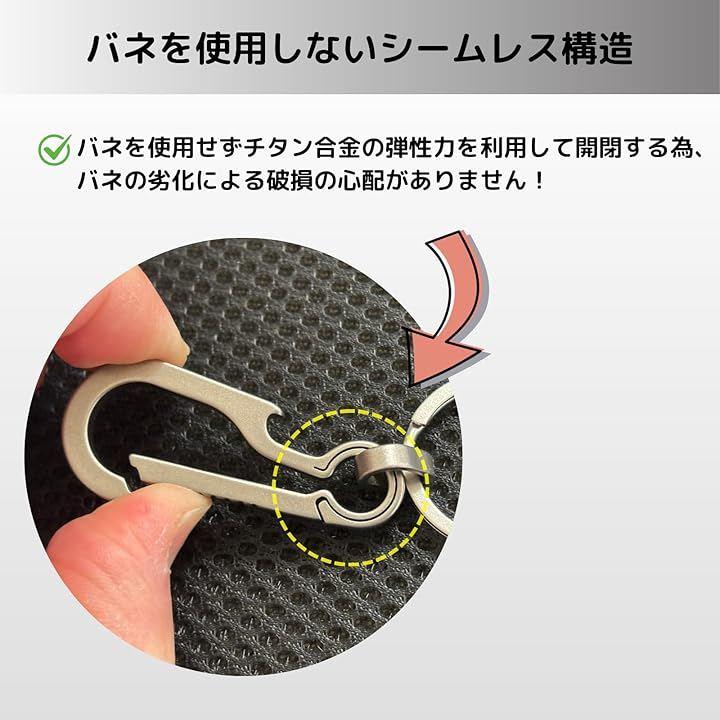 高品質素材: 耐久性に優れたチタン製カラビナで、軽量かつ頑丈な設計です