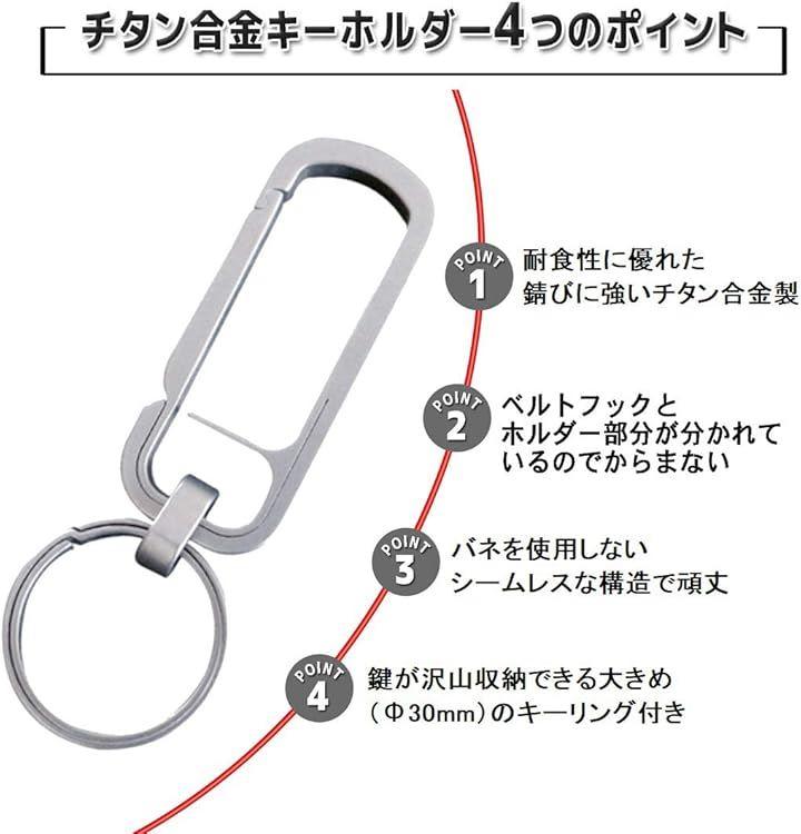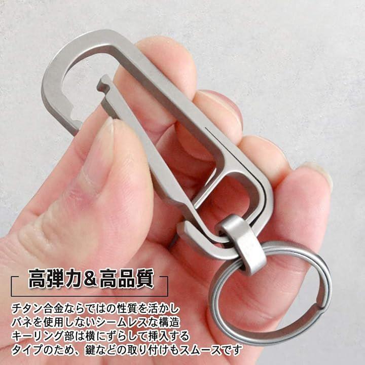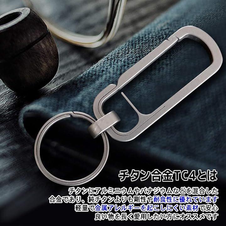 「寸法」カラビナ部:約60x25x4mm キーリング外径:約30mm 「重量」約13.5g 「材質」チタン合金 (TC4)