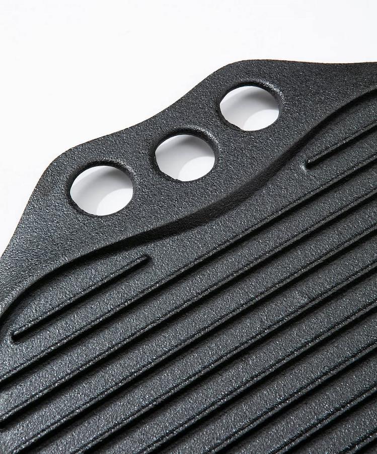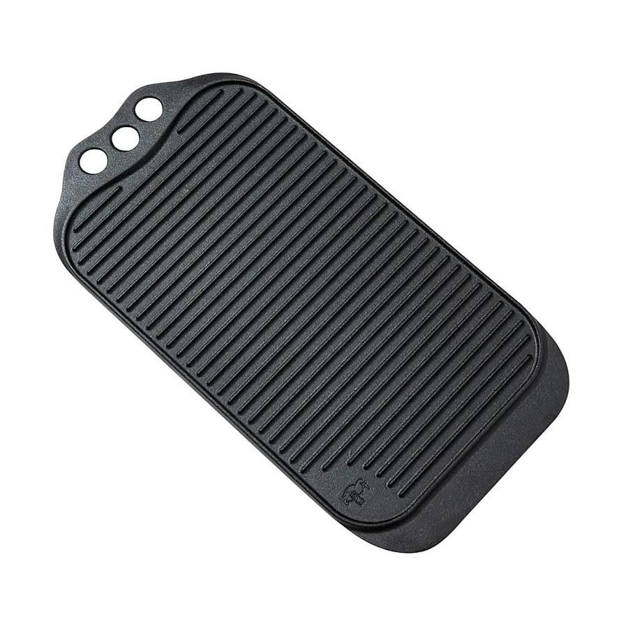 グリルとフラットの両方を備え、キャンプ料理の幅が広がるリバーシブル仕様のアウトドア用鉄板。蓄熱に優れた鋳鉄製で効率よく熱を与え、食材を美味しく焼き上げます。フラット面にはCHUMSロゴ、グリル面にはブービーバードロゴ入り。