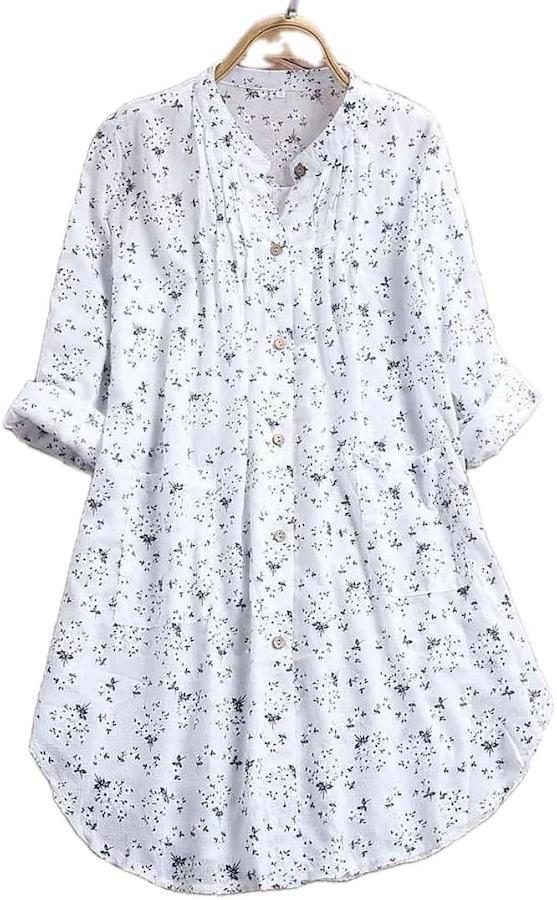 「商品特徴」さわやかな小花柄がかわいらしい膝上丈のチュニックシャツ。