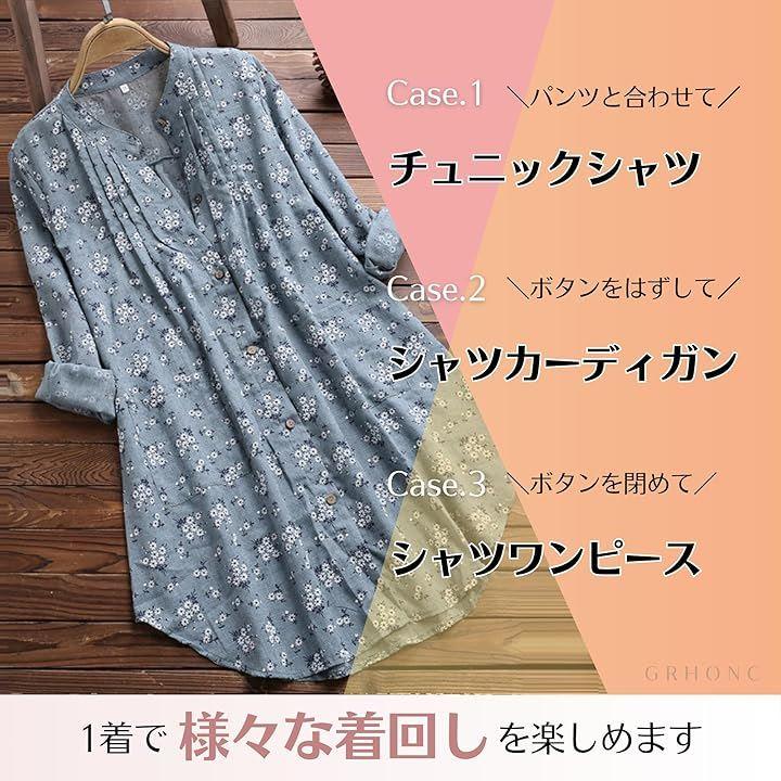「幅広い着回し」ワンピースやチュニックとしてのご使用はもちろん、フロントのボタンをはずしてロングシャツカーディガンのように普段のコーディネートの上から羽織っていただくことも可能です。