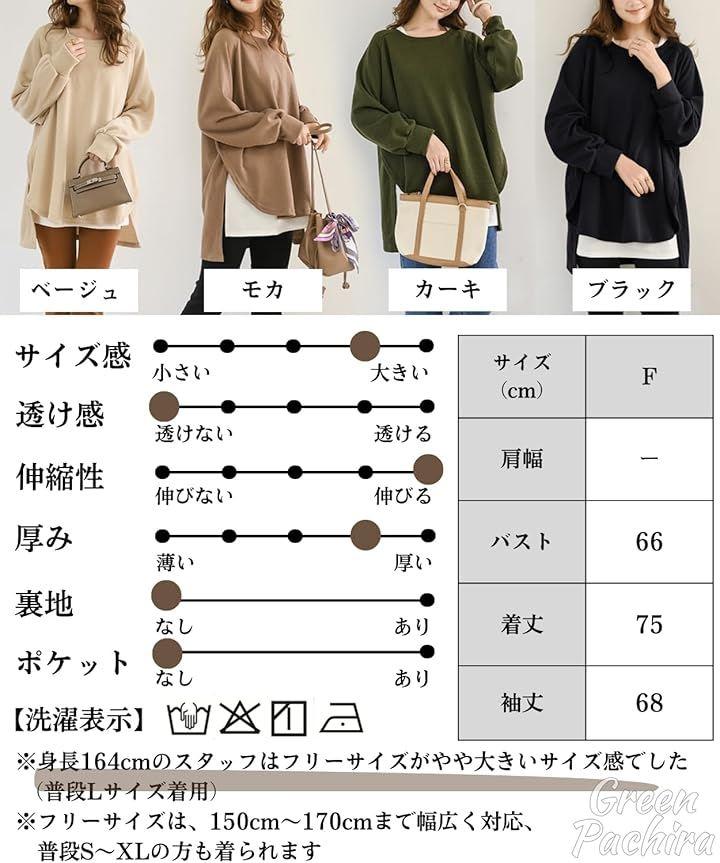 「仕様」◉素材:綿30%(コットン30%)・ポリエステル65%・スパンデックス5% ◉フリーサイズ:肩幅/バスト66/着丈75/袖丈68 cm 製造工程の関系で各採寸箇所が実寸(平置き)より約「-3cm ~ +3cm」程度の誤差が生じる場合があります。