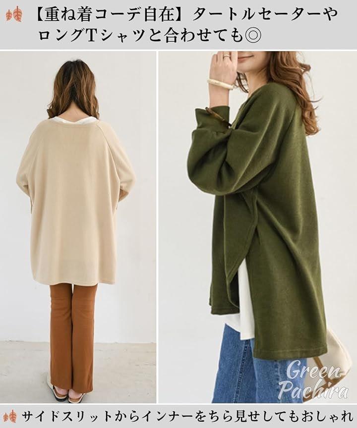 お尻が隠れるトップスとして、ゆったりとしたシルエットで、全体的に大きめに設計されています。