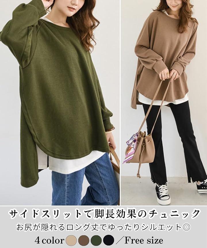 「スリットデザインが一際目を引くチュニック トップス」左右のスリット・前丈&後丈のデザインがおしゃれなレディースの秋冬向けのトップスです。
