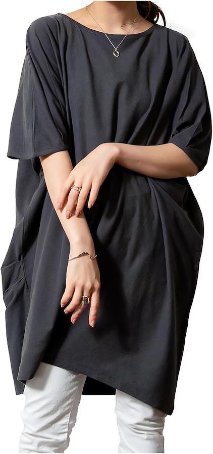 二の腕をキレイに隠しつつ、薄手の生地でキレイな落ち感が印象的。