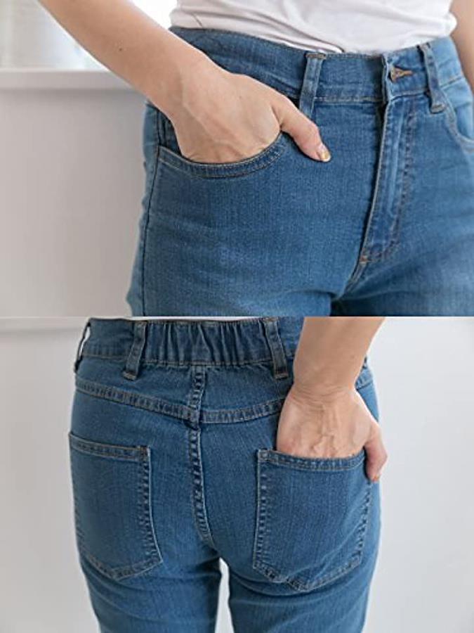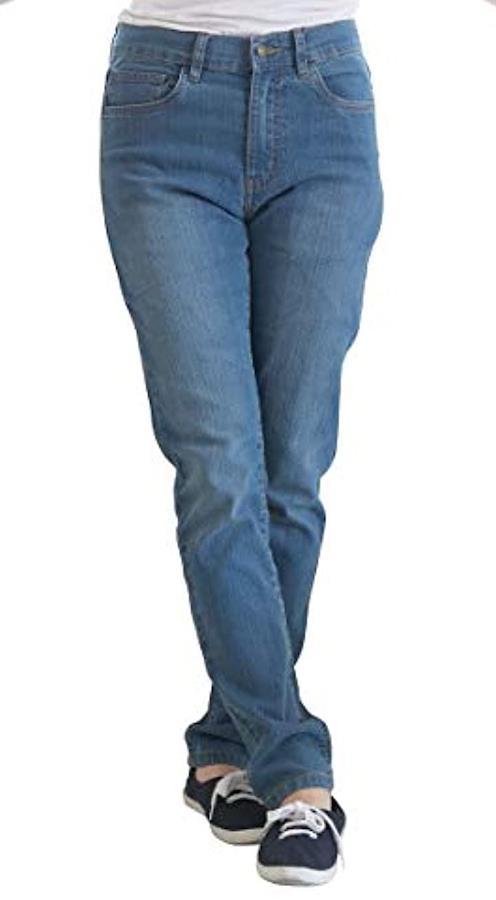 Twill Denim Pants Stretch Front Zipper Large Size Ladies