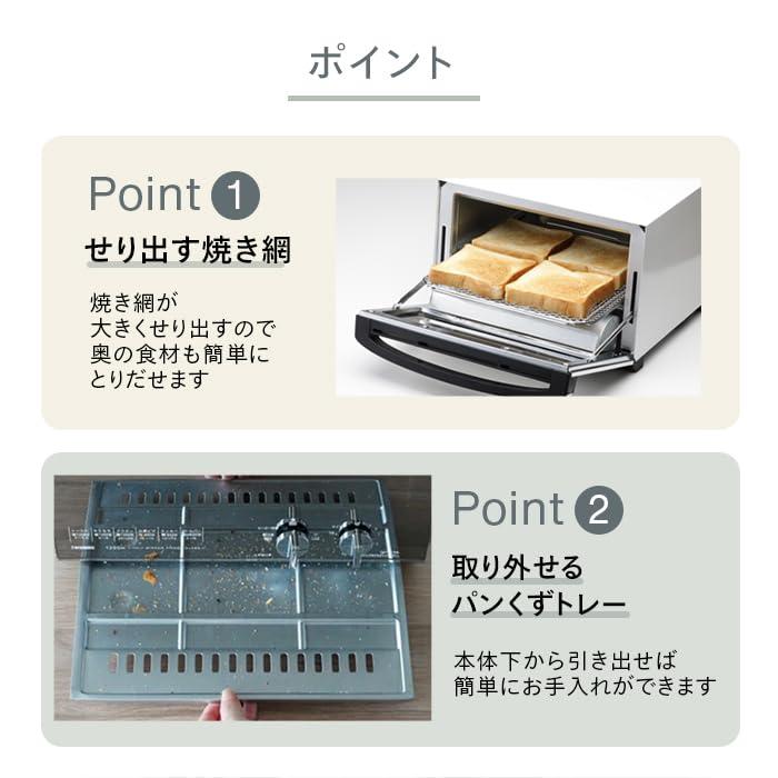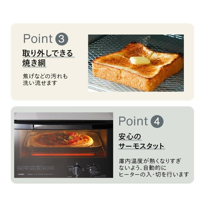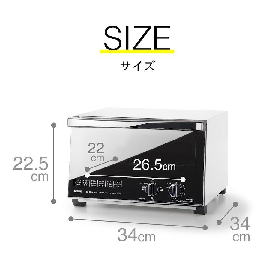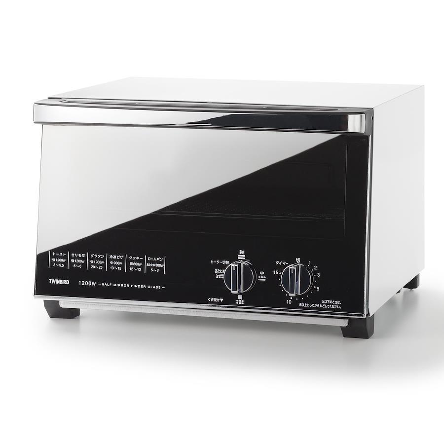 Twinbird Toaster Oven Toaster 4 Slices 4 Power Settings 15 Minute Timer Mirror Glass Top Plate Included [1 Year Manufacturer's Warranty] White TS-4047W