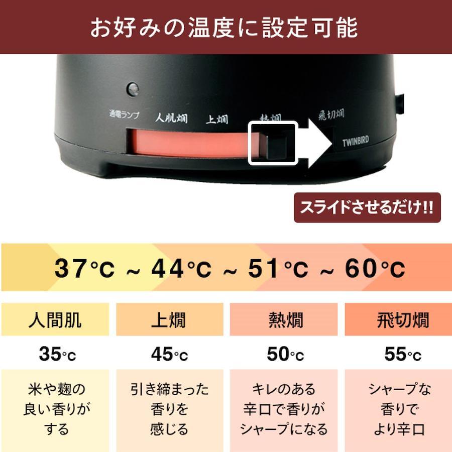 温度調節範囲: 4段階 37~60℃(人肌燗/上燗/熱燗/飛切燗)