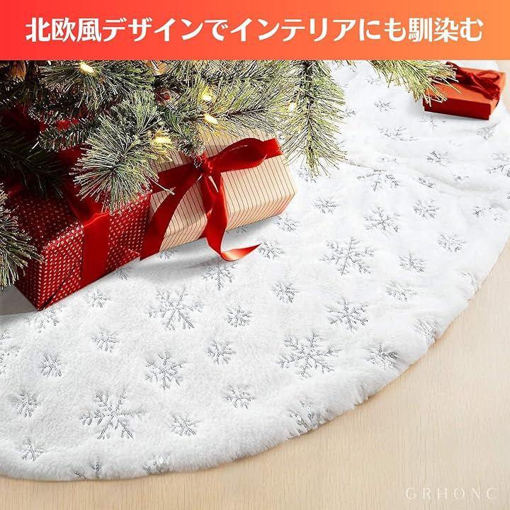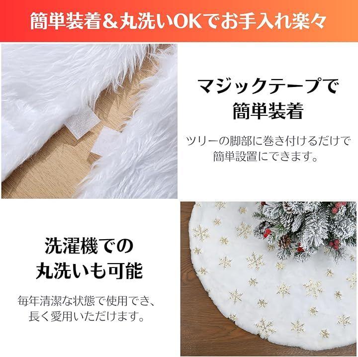 「サイズ」直径78cm「素材:高密度フェイクファー(ポリエステル)「カラー」ホワイト短毛/ホワイト長毛/ゴールドスノー/シルバースノー「機能」洗濯可・滑り止め付き「用途」クリスマスツリー足元カバー