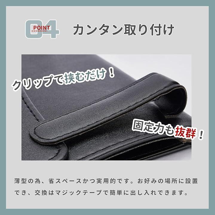 車のサンバイザー、ドアポケット、ヘッドレスト、フロントシートボディなどに2つのレザークリップで取り付けできる、簡単、安全で便利なアイテムです。