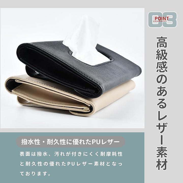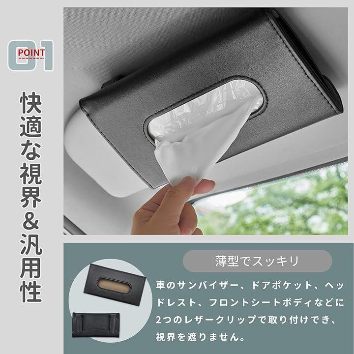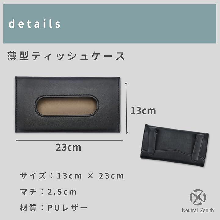 「車用薄型ティッシュケース」PUレザー素材の車用薄型スリムティッシュケースです。