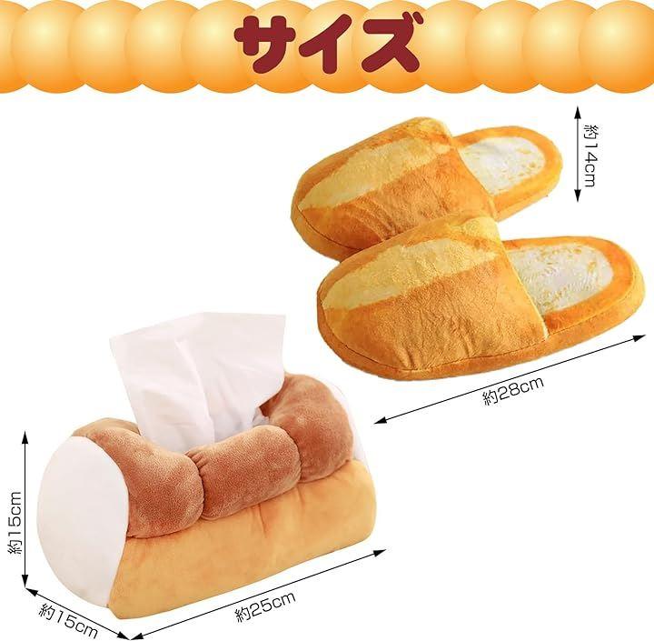 パンティッシュケース、スリッパセット(各1個、2個セット)、食パン:幅25x奥行15x高さ15cm、フランスパン:長さ28x高さ14cm*モニターの環境により、色の見え方に若干差が生じる場合がございます。