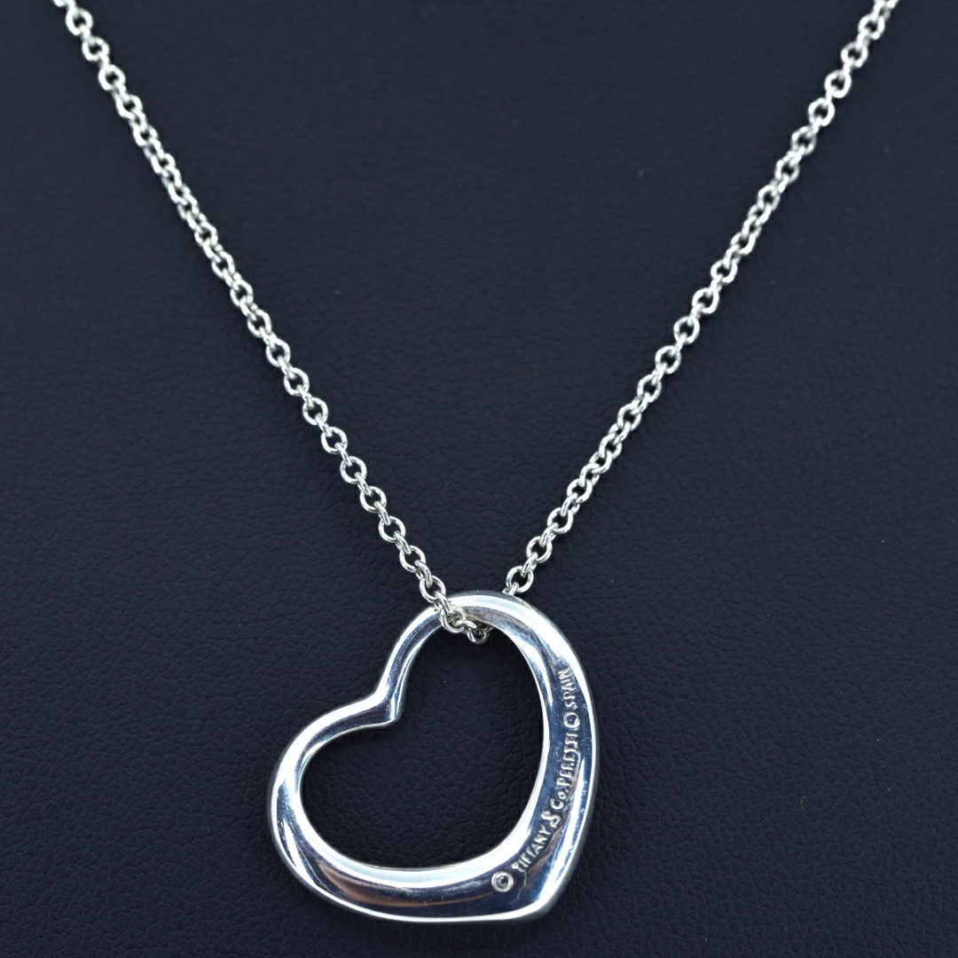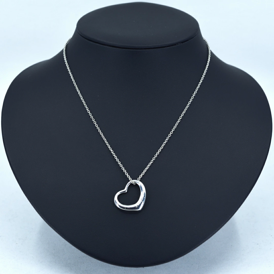 Tiffany & Co. SV925 Open Heart Necklace, Silver, SV925, Approx. 40cm Chain, Women's, Jewelry/Gemstones/Precious Metals/Necklace/Chain Necklace [Pre-owned]