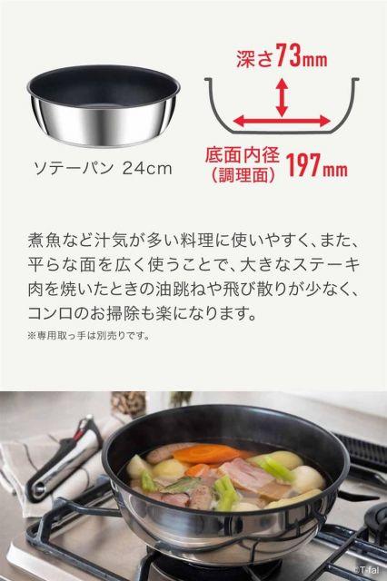 スタイル:04)ソテーパン24cm◆商品名:ティファール取っ手のとれる炒め鍋24cm深型フライパンIHガス火対応PFOAなどの有害物質不使用「インジニオ・ネオIHステンレス・アンリミテッドソテーパン」こびりつきにくさ長持ちステンレスL97135