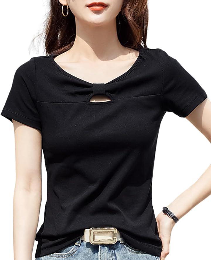 ぴったりとしたシルエットがスタイルをよく見せ、可愛い服を着こなしたい方におすすめのティーシャツ レディース 半袖。