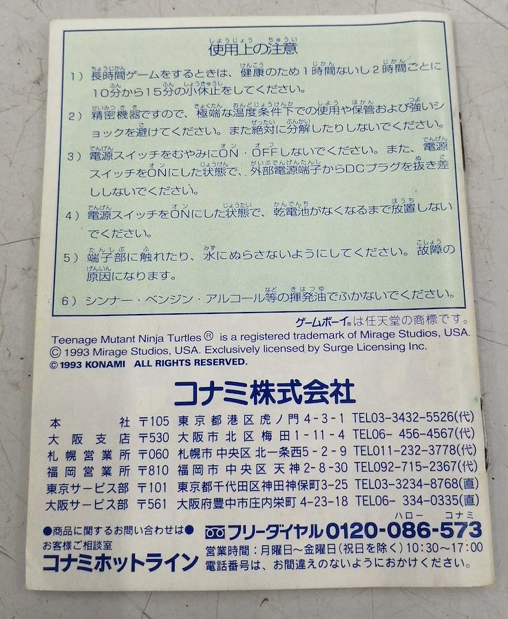 ティーンエージ ミュータント タートルズ 3 DMG-K8J KONAMI ゲームボーイソフト KONAMIDMG-K8Jティーンエージ ミュータント タートルズ 3