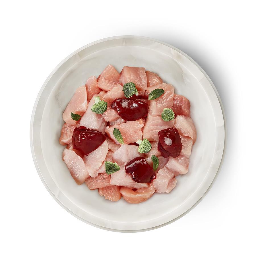[コンプリート食] 1種類の新鮮なお肉とお野菜 ・90%の新鮮なお肉(筋肉・内臓)使用 ・グレインフリー ・アレルギーの心配な愛猫にも ・水分補給に 味にうるさいグルメな愛猫におすすめ