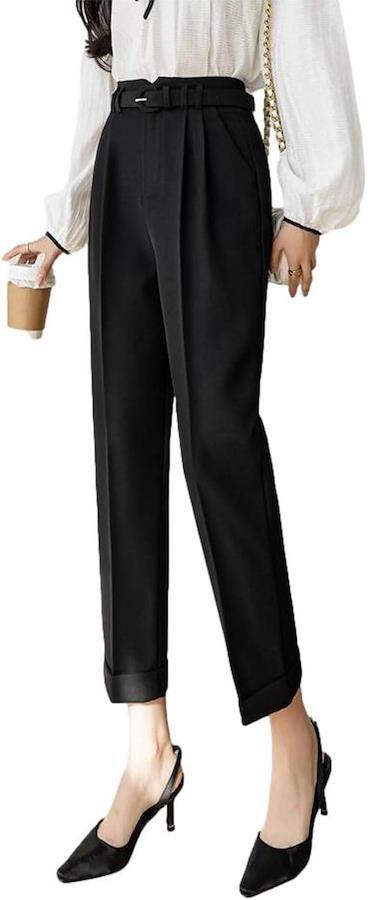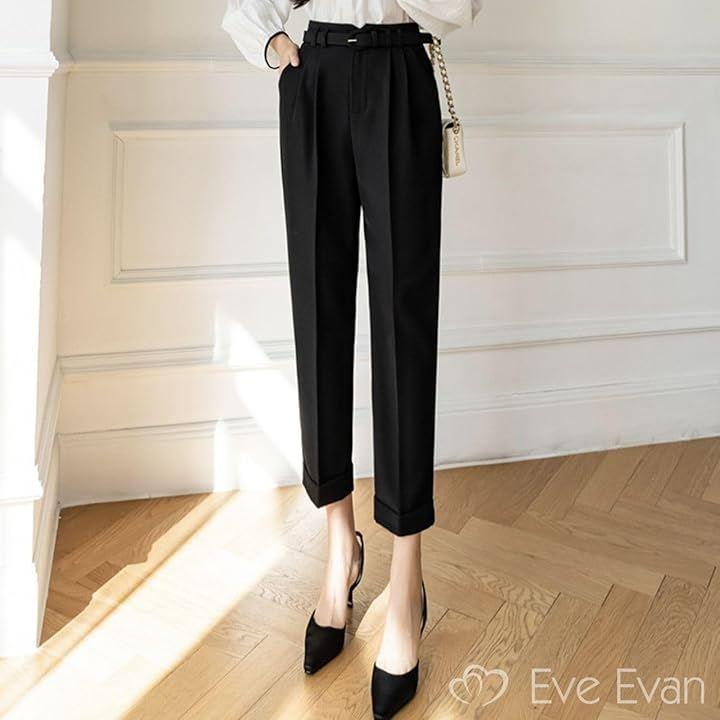 Tapered pants, ankle length, high waist, roll-up style, center crease, slacks, belted, straight, slim pants, ankle pants, feminine style, cool, simple, beautiful lines, belt loops, EE42