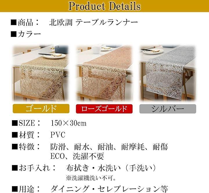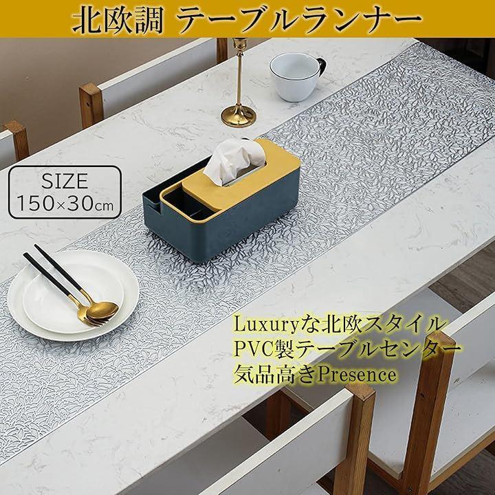 商品詳細:北欧調テーブルランナー 「材質」 PVC 「SIZE」 150x30cm 「特徴」 防滑、耐水、耐油、耐摩耗、耐傷、ECO、洗濯不要 「お手入れ」 布拭き、水洗い(手洗い)