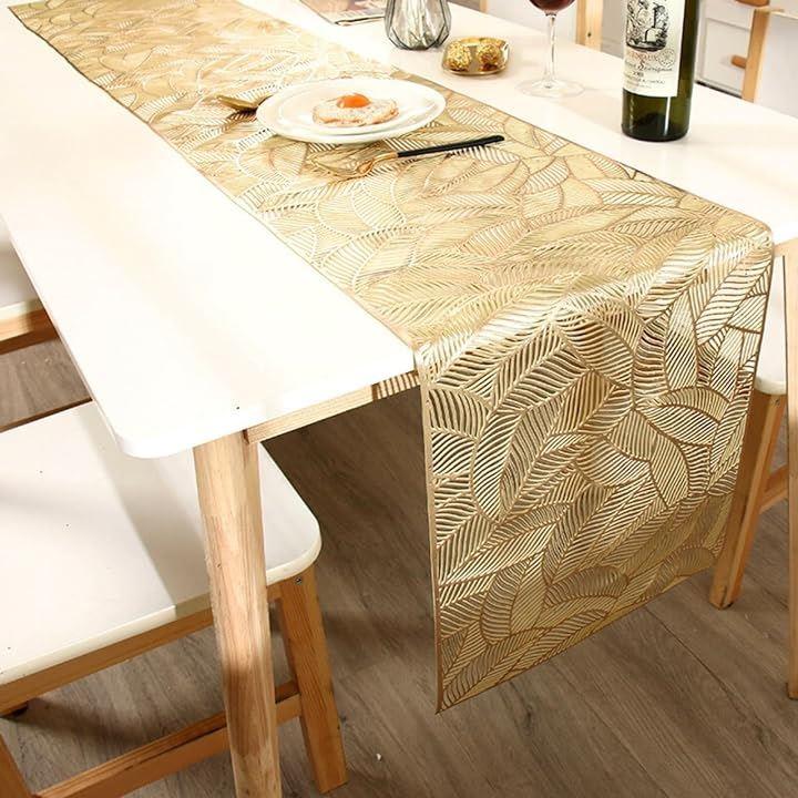 食卓を彩るリーフデザインの透かし仕様のテーブルランナー