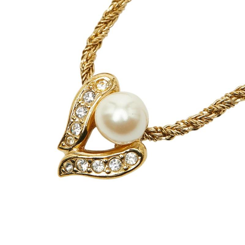 - ディオール ペンダント ネックレス ゴールド フェイクパール ラインストーン メッキ レディース Dior 【中古】