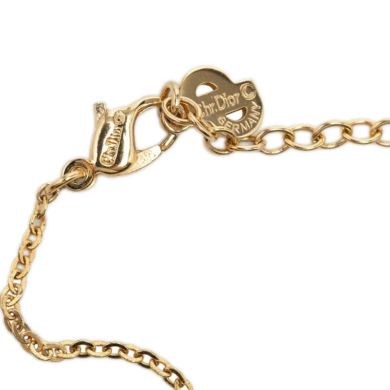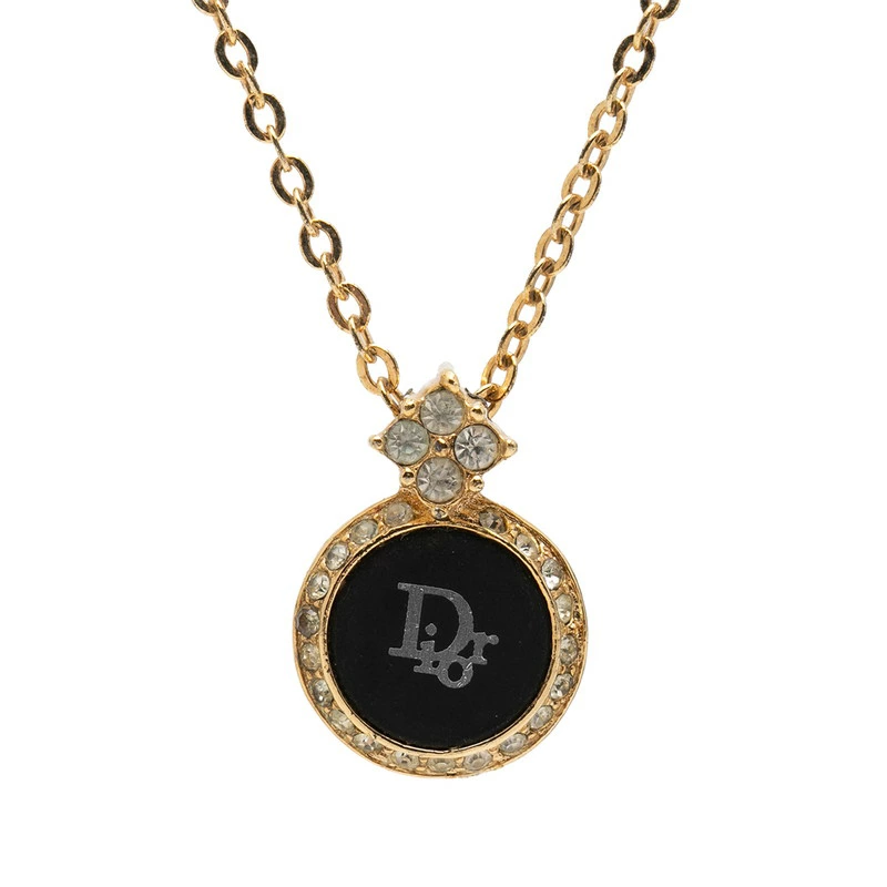- ディオール ロゴ ネックレス ゴールド ブラック メッキ ラインストーン レディース Dior 【中古】