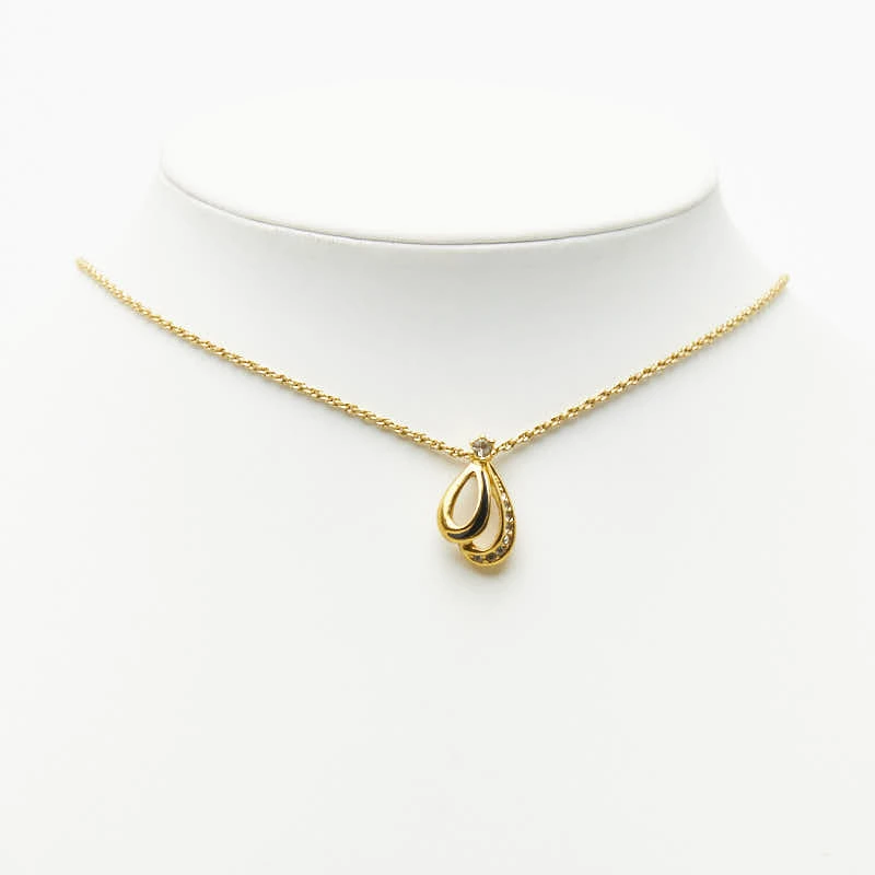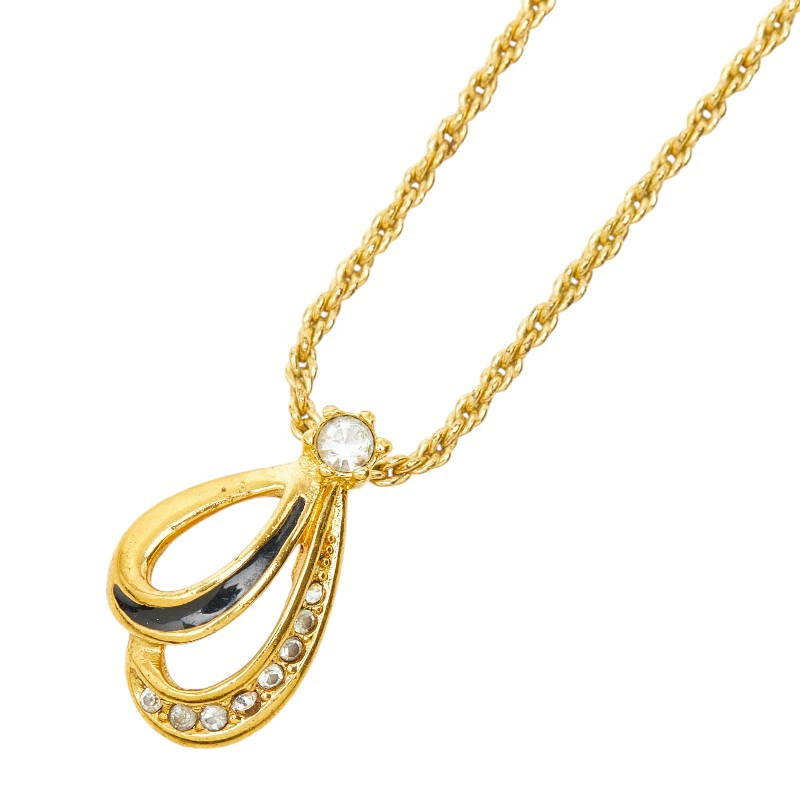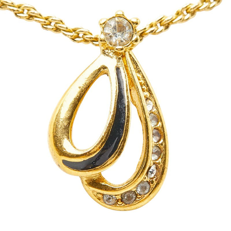 - ディオール ヴィンテージ ドロップ チェーン ペンダント ネックレス ゴールド メッキ エナメル ラインストーン レディース Dior 【中古】