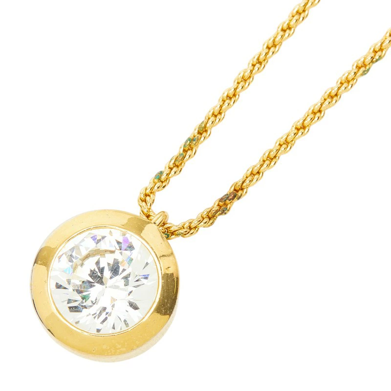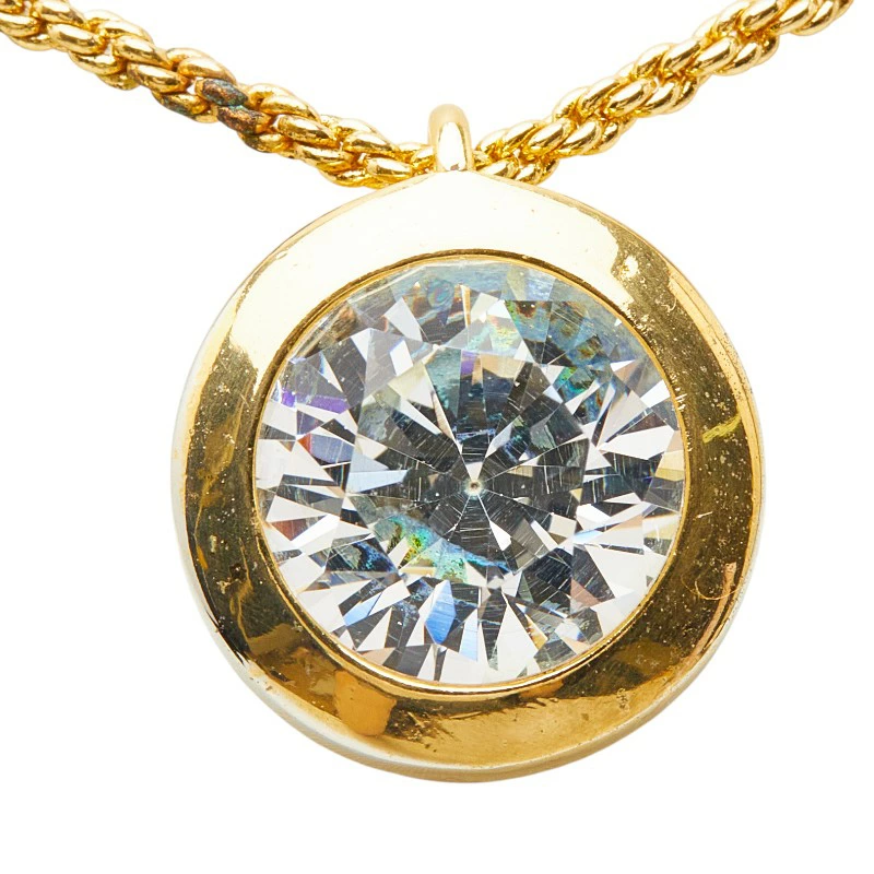 - ディオール 大粒 チェーン ペンダント ネックレス ゴールド ラインストーン メッキ レディース Dior 【中古】